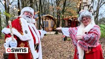 These adorable pictures show excited dogs visiting Santa Claus and receiving a present from him after finding out they are on the 'nice list'. Dog lover Kerry Youngman has built a Santa's Grotto where dog owners are able to watch their little ones sit on Santa Claus' lap and pose for a picture with him. The festive scene includes a lifesize dancing reindeer, Santa's sledge, Ccaise lounge, and pile of presents for all the well-behaved pups. Kerry, who owns four dogs herself, says the pups get to visit Santa after they are pampered at her dog groomers beforehand.