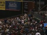 During a game of baseball, the batsman hit the ball hard towards the fence. However, the defender caught the ball in his hand and prevented a home run.