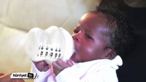 3 günlük bebek Amara Chiedozie kendini biberonla besliyor
