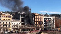 Columna de fum negre per l'incendi carrer del Carme de Girona