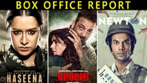 Take a look at Sanjay Dutt's Bhoomi, Shraddha Kapoor's Haseena Parkar and Rajkummar Rao's Newton first weekend box office report.<br /><br />Watch latest Bollywood gossip videos, latest Bollywood news and behind the scene Bollywood Masala. For interesting Latest Bollywood News subscribe to Biscoot TV now : http://www.youtube.com/BiscootTV<br /><br />Like us on Facebook<br />https://www.facebook.com/BiscootLive<br /><br />Follow us on Twitter<br />http://www.twitter.com/BiscootLive<br /><br />For Latest Bollywood News Subscribe us on Youtube <br />http://www.youtube.com/c/BiscootTV<br /><br />Circle us on G+ <br />https://plus.google.com/+BiscootLive<br /><br />Find us on Pinterest<br />http://pinterest.com/BiscootLive
