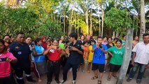 This is the terrifying moment rescue workers grappled with a giant king cobra that was caught hiding under a kitchen sink.<br /><br />The 17ft long snake had slithered inside a washing machine then darted out under the sink when it was disturbed in Krabi, southern Thailand yesterday (February 6).<br /><br />The house owner, Khun Gommaton, heard the reptile clattering around knocking over empty bottles of washing powder. <br /><br />He initially thought it was a mouse and followed the sound - shrieking when he noticed the cobra's head.<br /><br />Gommaton said: ''The clattering was getting louder and louder. I really thought it was a mouse, so I intended to take it out myself. But I was totally wrong.''<br /><br />Krabi rescue officers responded to the house owner’s call and took more than 15 minutes trying to capture the hiding serpent.<br /><br />They are seen in the footage visibly struggling and shaking as they grapple with the powerful snake.<br /><br />The officer said that it is one of the biggest venomous snakes he had ever caught. He added, ''It's very huge and heavy. I think it weighs about 20 kilograms (45 pounds).<br /><br />''It might have been looking for food around here. We are going to take him back to the natural habitat, where there are no houses and people around.''