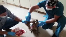 Yaralı kızıl akbabayı tedavi edip elleriyle beslediler