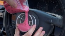 Boy makes an Audi logo keychain using a handmade silicone mold