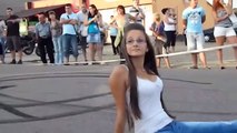 Ce motard s'arrete au dernier moment entre... les cuisses d'une fille