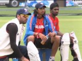 Sachin Tendulkar continued to remain in waiting for his elusive 100th international century even as India looked strong on 212 for three at tea on the first day of the second Test against the West Indies here today. Rahul Dravid was looking strong with 62 from 128 balls with seven boundaries, while VVS Laxman (1) was giving him company at the end of session two.