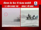 One of the tragedies of cyclone Nilam was around oil tanker MT Pratibha Cauvery that ran aground within 50 metres off the Besant Nagar Beach. Reports say the captain of the oil tanker ordered sailors to abandon ship after the vessel lost anchor. But the lifeboat carrying 22 sailors to the shore overturned in the choppy waters. Fishermen roped in for rescue work have only found 16 of them. The Navy, Coast Guard and other agencies are searching for the remaining six crew members.<br /><br />For more log on to http://www.newsx.com