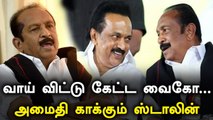 DMK treasurer M.K. Stalin, keen on knitting together a mega alliance against the AIADMK, is ready to meet Marumalarchi Dravida Munnetra Kazhagam general secretary Vaiko as a first step towards giving shape to his plan. <br /><br />While the MDMK side expects the meeting to take place at the wedding of the daughter of the former Union Minister Anbumani Ramadoss, at Mamallapuram, Mr. Stalin said he would be more than happy to meet Mr. Vaiko anywhere. “Of course, the wedding provides an opportunity for meeting various leaders. But he can always meet Mr. Vaiko anywhere,” sources said. <br /><br />On the other hand, the MDMK leader said he was thankful to Mr. Stalin for his “kind words” about him in a recent television interview. Mr. Vaiko told that as leaders who respected political etiquette, they would have no problem meeting each other.<br /><br /><br />For More information on this news visit : http://www.newsx.com/<br />Connect with us on Social platform at : http://www.facebook.com/newsxonline<br />Subscribe to our YouTube Channel : http://www.youtube.com/newsxlive