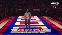 Ein ganz besonderer Moment in der Modehauptstadt Paris war der Auftritt der inzwischne 70 Jahre alten Grace Jones.