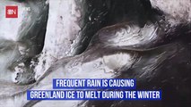Frequent Rain Is Causing <br />Greenland Ice to Melt During the Winter The rain is currently only affecting the <br />south and southwest regions. Should all of the ice in the south regions melt, <br />coastal cities around the globe could become flooded. During the winter, new snowfalls makeup for ice <br />that melted over the warmer seasons. Earlier records from Greenland <br />weather stations say rain used to fall an average of two times during the winter. But as of 2012, reports say it has rained a<br />dozen times throughout winter annually. Rain does freeze after melting the ice, but <br />leaves the surface with a darker complexion. Since darkened ice absorbs more of the sun's heat, affected areas are now melting faster <br />during the spring and summer.