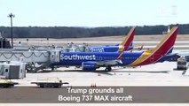 Trump Orders US Grounding<br />of Boeing 737 MAX 8 and 9 Planes President Donald <br />Trump's Wednesday <br />afternoon order <br />is effective immediately. Trump said all of the Boeing <br />planes that were currently <br />in flight would be ordered to land. The order follows new <br />information about the recent <br />crash of Ethiopian Airlines Flight 302. The MAX 8 flight crashed into a <br />field shortly after take off on <br />Sunday, killing all 157 people aboard. In the following days, dozens <br />of countries grounded the planes after investigators drew parallels <br />between that crash and the <br />Lion Air MAX 8 crash last year <br />that killed 189 people. Prior to Trump's order on Wednesday, <br />Canada also ordered the grounding of <br />the Boeing planes citing the new data. China was the first country <br />to order the suspension of <br />the Boeing MAX 8 and 9 <br />planes on Monday evening.