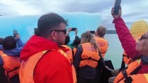 Chile: two icebergs break off from a glacier in Patagonia