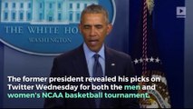 Barack Obama Releases His <br />March Madness Predictions On the men's side, the former U.S. president has Duke winning the title. His Final Four <br />also consists of Tennessee, Michigan and North Carolina. In that Final Four, he's also picked Baylor, Notre Dame and Mississippi State. For the women's tournament, <br />he has successfully picked <br />the champion five times. Barack Obama, via Twitter