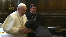 This is the hilarious moment Pope Francis repeatedly tries to prevent devotees from kissing his papal ring.