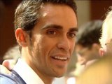 <p>El vacío de Contador ante la ausencia de himno cuando se proclamó campeón del Tour de Francia ha sido subsanado rápidamente por unos 50 pinteños que han comenzado a corear el himno nacional en el recibimiento de la Comunidad de Madrid. Y, secundándoles, Esperanza Aguirre, que ha agarrado el micrófono para tararear el �lala-lala� de la música patria.En agradecimiento, el bicampeón del Tour la he regalado a la presidenta uno de sus maillots amarillos, que Aguirre no ha dudado un momento en enfundarse.</p>