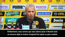 De retour en tête du classement, le Borussia Dortmund a battu Wolfsbourg sur sa pelouse du Signal Iduna Park (2-0) ce samedi pour le compte de la 27e journée de Bundesliga. En conférence de presse d'après-match, l'entraîneur du BVB Lucien Favre a confié vouloir "savourer cette victoire aujourd'hui avant de penser au Bayern" que le club de la Ruhr ira défier le week-end prochain à l'Allianz Arena dans un choc au sommet sûrement décisif pour le titre de champion d'Allemagne.