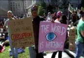 <p>La policía Metropolitana y la Montada han impuesto severos bloqueos que no han evitado que la marea de jóvenes irrumpa en Trafalgar Square y se plantaran numerosas tiendas de campaña en esta emblemática plaza.</p>