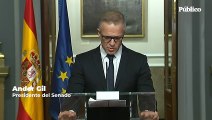 El senador del PSOE Ander Gil ha lamentado que el presidente de la Generalitat no haya acudido a explicar su postura ante el Senado. Gil critica la decisión de Carles Puigdemont porque "no tiene credibilidad quien pide diálogo y cuando se le ofrece la oportunidad de comparecer en la Cámara territorial de su país lo desprecie". Y le pide que convoque elecciones porque no hay democracia sin Constitución. "Aquellos que no reconocen la importancia de la Constitución es porque no vivieron en primera persona ni la persecución ni la falta de libertad durante la dictadura de Franco". Una Constitución que, dice, es el marco de garantía para nuestra convivencia y para la paz. Gil también ha arremetido contra el Gobierno de Mariano Rajoy al tratar de solucionar el problema por vía judicial y no política. Respecto a la formulación del artículo 155, proponen las siguientes mejoras. En primer lugar, el PSOE propone la reversibilidad del propio artículo antes de su entrada en vigor si Puigdemont convoca elecciones. Tampoco ven con buenos ojos que la radio y televisión públicas catalanas pasen a depender del Gobierno central.<br />-Redacción-