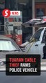A policeman escaped serious injury when a car rammed into him while he was directing traffic at a busy intersection on Jalan Raja Laut in Kuala Lumpur at 8.11am Tuesday.<br /><br />Footage of the incident went viral on social media.<br /><br />City Traffic Investigation and Enforcement Department chief Asst Comm Zulkefly Yahya said the policeman only suffered light injuries to his leg and was taken to Hospital Kuala Lumpur for treatment.<br />"The driver, a private university student, 25, has been brought to the traffic police station nearby to assist investigations.<br /><br />Read more at https://www.thestar.com.my/news/nation/2019/04/02/traffic-cop-rammed-by-car-while-directing-traffic/
