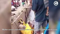 Mulher cai em valão depois de ser atingida por caminhão, em Aracruz