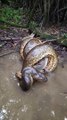 This husky saved his family from an unwelcome intruder - by catching a python outside their home. <br /><br />Five-year-old Alaskan husky Frank noticed the 5ft long serpent slithering on the ground in Bangkok, Thailand, last Thursday (April 4). <br /><br />He pounced on the reptile and showed what a useful guard dog he can be - pawing at the snake until it succumbed to its injuries. <br /><br />Owner Wisiri Poonpuck said: ''I was terrified when I saw Frank with the snake but luckily he was not hurt. <br /><br />"The same cannot be said for the snake though. He stopped it from getting anywhere inside our home.''
