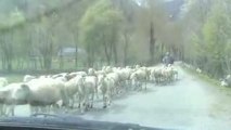 Ce troupeau de moutons a causé un vrai embouteillage sur cette route.
