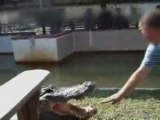 This guy is trying to teach a 13 1/2 foot alligator a new trick. So far I don't think the alligator understands his part in the trick. http://www.allinnone.com