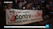 Parisians gather and sing hymns on the Tournelle Bridge opposite Notre Dame