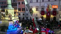 Omaggio per l'Immacolata dei Vigili del Fuoco a Roma, corona di fiori su statua a Piazza di Spagna