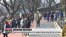 Now we take a look at the weather conditions in South Korea,... temperatures tonight will get relatively chilly throughout the evening,... with sporadic showers expected in the northern Gyeonggi-do and Gangwon-do provinces.<br /> Similar conditions are expected for tomorrow, with temperatures ranging from 12 to 20 degrees Celsius.<br />Fine dust levels are forecast to stay normal... throughout the end of the weekend.<br />With that,... we leave you with the weather conditions from around the world. <br />