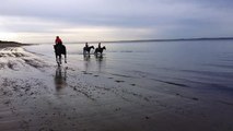 This is the amazing moment a horse encountered a few dolphins whilst going for a swim on a beach in South Australia.<br /><br />The footage, captured by the racehorse trainer, shows three dolphins swimming just a few inches from the horse as it trots in shallow waters. <br /><br />The playful dolphins can be seen darting in and out of the water as if they were encouraging the horse to join them.<br /><br />‘’The Newest Equine Training System, we take our young horses out swimming with dolphins. <br /><br />‘’This particular horse Breeze is a dolphin magnet. As he swims he groans and seems to consistently attract our beautiful dolphin friends to come and play with us. <br /><br />‘’Occasionally the animals play together slashing and dancing, most of the time we are all just amazed by each others company. <br /><br />‘’He is only a young horse but the dolphins have chosen correctly this time, his trainer Lara Beth believes he is that magic one in a million horse who will one day change the world.’’