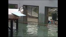 Silly Penguin Is Too Scared To Jump Off The Diving Board. This Is Hilarious….