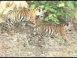 A tiger devours its Chital or Axis deer kill, starting from the rear end, in Kanha National Park, Madhya Pradesh, India. The tiger almost seems to be smiling in between chomps (like a happy dog with a bone!), with blood happily splattered over its mouth!<br /><br />The tiger also known as Panthera tigris is one of the largest cat species in the world reaching up to a total body length of 3.3 metres and weighing up to 306 kg. The common feature of a tiger is the pattern of dark vertical stripes on reddish-orange fur with lighter under parts. They have particularly stout teeth, and long canines. Tigers can live up to 20-26 years. They are territorial, protective and generally social animals. They often require large end-to-end areas of habitat that can sustain their prey requirements. This, coupled with the fact that they are indigenous to some of the more densely populated places on Earth, has caused significant conflicts with humans.<br /><br />Tigers once ranged widely across Asia, from Turkey in the west to the eastern coast of Russia. Over the past 100 years, they have lost 93% of their historic range, and have been extirpated from southwest and central Asia, from the islands of Java and Bali, and from large areas of Southeast and Eastern Asia. Today, they range from the Siberian taiga to open grasslands and tropical mangrove swamps. The remaining six tiger subspecies have been classified as endangered by IUCN. The global population in the wild is estimated to number between 3,062 to 3,948 individuals, with most remaining populations occurring in small pockets that are isolated from each other. Major reasons for population decline include habitat destruction, habitat fragmentation and poaching. The extent of area occupied by tigers is estimated at less than 1,184,911 km2 (457,497 sq mi), a 41% decline from the area estimated in the mid-1990s.<br />Tigers are among the most recognizable and popular of the world's charismatic megafauna. They have featured prominently in ancient mythology and folklore, and continue to be depicted in modern films and literature. Tigers appear on many flags, coats of arms, and as mascots for sporting teams. The Bengal tiger is the national animal of Bangladesh and India.<br /><br />Kanha National park is located in Banjar and Halon valleys in the Mandla / Balaghat districts of the state of Madhya Pradesh. Kanha National Park is one of the India's finest tiger reserves. It is spread more than 940 sq km in a horse shoe shaped valley bound by the spurs of the Mekal range the park presents a varies topography. <br /><br />Kanha national park is more famous for its wildlife, the natural beauty of its landscape is just as fascinating. Kanha also shelters one of the largest populations of the tigers in the country. Some of the other larger animal species found in the park are sloth bear, leopard, striped hyena, spotted dear, wild boar, jungle cat, jackal and a variety of monkeys. Over 200 spices of birds have been spotted in the park. <br /><br />There are many folklore about how it got kanha name. Some say it came from kanha, the clay like soil of the river bottoms, Other say the area is named for kanha a holy forest sage, who once lived here and was the father of shakuntala, whose son was Bharat and whose story was told in our legends. <br /><br />Courtesy: Wikipedia & http://www.kanha-national-park.com/<br /><br />This footage is part of the professionally-shot broadcast stock footage archive of Wilderness Films India Ltd., the largest collection of imagery from South Asia. The Wilderness Films India collection comprises of thousands of hours of high quality broadcast imagery, mostly shot on HDCAM 1080i High Definition, HDV and XDCAM. Write to us for licensing this footage on a broadcast format, for use in your production! We are happy to be commissioned to film for you or else provide you with broadcast crewing and production solutions across South Asia. We pride ourselves in bringing the best of India and South Asia to the world... Reach us at rupindang (at) gmail.com and admin@wildfilmsindia.com.