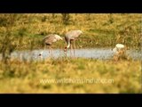 Majestic Sarus crane at sunrise <br /><br />The Sarus Crane (Grus antigone) is a large non-migratory crane found in parts of the Indian Subcontinent, Southeast Asia and Australia. The tallest of the flying birds, standing at a height of up to 1.8 m (5.9 ft),[3] they are conspicuous and iconic[4] species of open wetlands. The Sarus Crane is easily distinguished from other cranes in the region by the overall grey colour and the contrasting red head and upper neck. They forage on marshes and shallow wetlands for roots, tubers, insects, crustaceans and small vertebrate prey. Like other cranes, they form long-lasting pair-bonds and maintain territories within which they perform territorial and courtship displays that include loud trumpeting, leaps and dance-like movements. In India they are considered symbols of marital fidelity, believed to mate for life and pine the loss of their mates even to the point of starving to death. The main breeding season is during the rainy season, when the pair builds an enormous nest "island", a circular platform of reeds and grasses nearly two metres in diameter and high enough to stay above the shallow water surrounding it.<br /><br />source: wikipedia<br /><br />This footage is part of the professionally-shot stock footage archive of Wilderness Films India Ltd., the largest collection of imagery from South Asia. The Wilderness Films India collection comprises of thousands of hours of high quality broadcast imagery, mostly shot on HDCAM 1080i High Definition, HDV and Digital Betacam. Write to us for licensing this footage on a broadcast format, for use in your production! We pride ourselves in bringing the best of India and South Asia to the world... wfi @ vsnl.com and admin@wildfilmsindia.com.