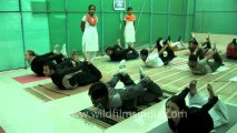Vajrasana is a sitting yoga posture or asana with different names such as Adamantine Pose, Diamond Pose, Kneeling Pose, Pelvic Pose and Thunderbolt Pose. The practitioner sits on the heels with the calves beneath the thighs. There is a four finger gap between the knee-caps and the first toe of both the feet touch each other.<br /><br />Internationally known Yoga University, the Yoga Vidya Gurukul or Yoga Vidya Dham in Nasik is an institue which imparts Yoga training to students and those aspiring to be yoga teachers. It functions under Yogacharya Vishwas Vasant Mandlik which is a Non Profit Organization (NGO) with the sole purpose of imparting Yoga Education to all sections of the society. For more info check http://www.yogapoint.com/info/yvd.htm<br /><br />Nashik or Nasik is the third biggest city in Maharashtra India. Nashik is located in the northwest of Maharashtra, 180 km from Mumbai and 202 km from Pune. Nashik is the administrative headquarters of Nashik district and Nashik Division. Nashik, which has been referred to as the "Wine Capital of India", is located in the Western Ghats, on the western edge of the Deccan peninsula on the banks of the Godavari. It is claimed to be the fastest growing city in Maharashtra. In addition to supplying the name to the famed Nassak Diamond, the city is known for its picturesque surroundings and pleasant climate. The Godavari River flows through Nashik from its source, which lies to the southwest of the city, in Trimbakeshwar . Nashik Urban Agglomeration (Nashik UA) has a (projected year 2009) population of 1,995,86 and a total area of 264.23 km² which makes it the fourth largest urban area in Maharashtra in terms of population. Nashik is the third most industrialized city in Maharashtra after Mumbai and Pune. <br /><br />Source - Wikipedia<br /><br />This footage is part of the professionally-shot broadcast stock footage archive of Wilderness Films India Ltd., the largest collection of imagery from South Asia. The Wilderness Films India collection comprises of thousands of hours of high quality broadcast imagery, mostly shot on HDCAM 1080i High Definition, HDV and XDCAM. Write to us for licensing this footage on a broadcast format, for use in your production! We are happy to be commissioned to film for you or else provide you with broadcast crewing and production solutions across South Asia. We pride ourselves in bringing the best of India and South Asia to the world... Reach us at wfi @ vsnl.com and admin@wildfilmsindia.com.
