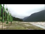 The old green-roofed Forest Rest House (FRH) at Yumthang, a series of prayer flags and a chorten or stupa. Yumthang lies beyond the village of Lachung and ahead of the Shingba Rhododendron sanctuary. See bucolic yaks and Pedicularis flowering in the meadow of Yumthang.<br /><br />Gangtok is the capital and largest town of the Indian state of Sikkim. Gangtok is located in the eastern Himalayan range, at an altitude of 5,800 feet. The town, with a population of one lakh, ninety thousand belonging to different ethnicities such as Indian-Nepalis, Lepchas and Bhutia, is administered by the "Gangtok Municipal Corporation". Nestled within higher peaks of the Himalaya and enjoying a year-round mild temperate climate, Gangtok is at the centre of Sikkim's tourism industry.<br /><br />Gangtok rose to prominence as a popular Buddhist pilgrimage site after the construction of the Enchey Monastery in 1840. In 1894, the ruling Sikkimese Chogyal, Thutob Namgyal, transferred the capital to Gangtok. In the early 20th century, Gangtok became a major stopover on the trade route between Lhasa in Tibet and cities such as Kolkata in British India. After India won its independence from Britain in 1947, Sikkim chose to remain an independent monarchy, with Gangtok as its capital. In 1975, after the integration with the union of India, Gangtok was made India's twenty-second state capital.<br /><br />Source: Wikipedia<br /><br />This footage is part of the professionally-shot broadcast stock footage archive of Wilderness Films India Ltd., the largest collection of imagery from South Asia. The Wilderness Films India collection comprises of thousands of hours of high quality broadcast imagery, mostly shot on HDCAM 1080i High Definition, HDV and XDCAM. Write to us for licensing this footage on a broadcast format, for use in your production! We are happy to be commissioned to film for you or else provide you with broadcast crewing and production solutions across South Asia. We pride ourselves in bringing the best of India and South Asia to the world... Reach us at wfi @ vsnl.com and admin@wildfilmsindia.com.