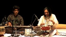 Bhajan Sopori is an Indian instrumentalist. He is a player of santoor, an ancient stringed musical instrument.Sopori hails from Sopore in Kashmir Valley and traces his lineage to ancient Santoor experts. He belongs to the Sufiana gharana of Indian classical music. His family has played santoor for over six generations. His first public performance was at a conference organised by Prayag Sangeet Samiti & the University of Allahabad when he was 10 years old. Sopori's son Abhay Rustum Sopori is also a santoor player. Both father and son have given several performances together.<br /><br />The Indian santoor is an ancient string musical instrument native to Jammu and Kashmir, with origins in Persia. A primitive ancestor of this type of instruments was invented in Mesopotamia (1600-911 BC). This archetype traveled to different parts of the east and each region customized and designed their own versions (see Iraqi Santur).<br />The santoor is a trapezoid-shaped hammered dulcimer often made of walnut, with seventy two strings. The special-shaped mallets (mezrab) are lightweight and are held between the index and middle fingers. A typical santoor has two sets of bridges, providing a range of three octaves.The Indian santoor is more rectangular and can have more strings than the Persian counterpart, which generally has 72 strings.<br /><br />Source - Wikipedia<br /><br />Bharatiya Vidya Bhavan presents "Sangeet Samaroh" A Festival of Indian Classical Music & Dance, which marks the Platinum Jubilee celebration of the Bharatiya Vidya Bhavan. The year 2012 marks the 75th year of the Bhavan and the 125th birth anniversary of its visionary founder K.M. Munshi. Many renowned artists attended this year's Sangeet Samaroh. The Delhi Kendra annually organizes the Sangeet Samaroh day since 2009.<br /><br />Bhartiya Vidya Bhavan:<br /><br />Bharatiya Vidya Bhavan is an Indian educational trust. Dr. K. M. Munshi founded it on November 7, 1938, with the blessings of Mahatma Gandhi. The trust's programs, through its 117 centers in India, 7 centers abroad and 355 constituent institutions, cover "all aspects of life from the cradle to the grave and beyond -- it fills a growing vacuum in modern life", as Pandit Jawaharlal Nehru observed when they first visited the Bharatiya Vidya Bhavan in 1950.<br /><br />Source: Wikipedia<br /><br />This footage is part of the professionally shot broadcast stock footage archive of Wilderness Films India Ltd., the largest collection of imagery from South Asia. The Wilderness Films India collection comprises of thousands of hours of high quality broadcast imagery, mostly shot on HDCAM 1080i High Definition, HDV and XDCAM. Write to us for licensing this footage on a broadcast format, for use in your production! We are happy to be commissioned to film for you or else provide you with broadcast crewing and production solutions across South Asia. We pride ourselves in bringing the best of India and South Asia to the world... Reach us at rupindang (at) gmail.com and admin@wildfilmsindia.com.