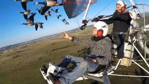 A flock of Demoiselle Cranes flies in V formation. Migrating birds fly in a V-formation to take advantage of the aerodynamic effects of flying behind another bird. Remarkably, birds take turns at the front despite no obvious benefit to the individual. The ones flying in V formation flapped their wings in phase so that the trailing bird could get an extra lift from the one that was ahead of it. <br /><br />This footage is part of the professionally-shot broadcast stock footage archive of Wilderness Films India Ltd., the largest collection of imagery from South Asia. The Wilderness Films India collection comprises of thousands of hours of high quality broadcast imagery, mostly shot on HDCAM 1080i High Definition, HDV and XDCAM. Write to us for licensing this footage on a broadcast format, for use in your production! We are happy to be commissioned to film for you or else provide you with broadcast crewing and production solutions across South Asia. We pride ourselves in bringing the best of India and South Asia to the world... Reach us at wfi @ vsnl.com and admin@wildfilmsindia.com