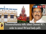 DMK's TKS Elangovan talks about Chennai HC's order to cancel TN local body polls<br /><br />Connect with Puthiya Thalaimurai TV Online:<br /><br />SUBSCRIBE to get the latest Tamil news updates: http://bit.ly/1O4soYP<br /><br />Visit Puthiya Thalaimurai TV WEBSITE: http://puthiyathalaimurai.tv/<br /><br />Like Puthiya Thalaimurai TV on FACEBOOK: https://www.facebook.com/PutiyaTalaimuraimagazine<br /><br />Follow Puthiya Thalaimurai TV TWITTER: https://twitter.com/PTTVOnlineNews<br /><br />About Puthiya Thalaimurai TV<br /><br /> Puthiya Thalaimurai TV (Tamil: புதிய தலைமுறை டிவி) is a 24x7 live news channel in Tamil launched on August 24, 2011.Due to its independent editorial stance it became extremely popular in India and abroad within days of its launch and continues to remain so till date.The channel looks at issues through the eyes of the common man and serves as a platform that airs people's views.The editorial policy is built on strong ethics and fair reporting methods that does not favour or oppose any individual, ideology, group, government, organisation or sponsor.The channel’s primary aim is taking unbiased and accurate information to the socially conscious common man.<br /> <br />Besides giving live and current information the channel broadcasts news on sports, business and international affairs. It also offers a wide array of week end programmes.<br /> <br />The channel is promoted by Chennai based New Gen Media Corporation. The company also publishes popular Tamil magazines- Puthiya Thalaimurai and Kalvi.<br /> <br />The news center is based in Chennai city, supported by a sprawling network of bureaus all over Tamil Nadu. It has a northern hub in the capital Delhi.The channel is proud of its well trained journalists and employs cutting edge technology for news gathering and processing.