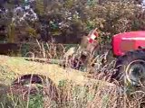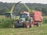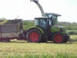 Voila le 6830 au tas avec la lame desvoys et le claas qui vient vider au tas avec la Benne Brimont 17 Tonne