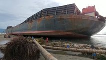 Kapal tongkang BG Nautica-20 yang mengangkut batu bara berangkat dari Palembang, Sumatera Selatan menuju Pelabuhan Ratu, Sukabumi, Jawa Barat. Namun karena cuaca buruk dan gelombang tinggi, kapal bertabrakan dan terdampar di Pantai Cipatuguran. Sebagian batu bara tumpah ke laut dan berceceran di pantai. Sejumlah relawan berinisiatif untuk membersihkan bongkahan batu bara yang mengotori pantai. Batu bara termasuk dalam limbah Bahan Beracun Berbahaya (B3) yang dapat mengganggu ekosistem.<br /> <br /><br /> <br />Antara Foto: Budiyanto, Widodo S Jusuf, Aji Styawan, Asep Fathulrahman, Rahmad