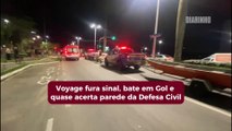 Vídeo flagra momento em que motoqueiro fura sinal e acaba atingindo um Ligeirão na Avenida Paraná, no Cabral. Os ocupantes da moto ficaram feridos.