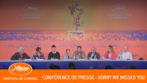 Les Marches de SORRY WE MISSED YOU avec Henry Béhar (modérateur) / Rebecca O’Brien (productrice) / Rhys Stone - comédien / Katie Proctor (comédienne) / Kris Hitchen (comédien) / Ken Loach (réalisateur) / Debbie Honeywood (comédienne) / Paul Laverty (scénariste) / Robbie Ryan (directeur de la photographie).