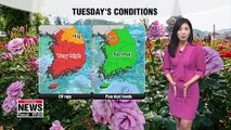 Good afternoon, a chilly morning will turn into warm afternoon leading to wide temperature differences across much of the nation... Gaps could be as wide as 20 degrees in some inland areas. <br />As for major cities on the map, daily highs will range between 23 and 27 degrees. Seoul at 23 degrees, Daegu at 26 degrees under dazzling sunshine. It shouldn't be as windy as yesterday. <br />As the sun will shine down on us all day... most parts are forecast to have very high UV rays, including here in Seoul. The Gyeongsang-do Provinces will have high ozone levels in the afternoon. Air quality, though, will be normal across the country. <br />A warming trend will return at the end of the week, sunny skies to dominate this week and into the weekend...so we are very likely to have high ozone and UV levels in the afternoon. <br /><br />That's Korea for you and here's the international weather for viewers around the world.<br /><br />