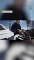 Hitting the high notes: Hanging from a crane, a pianist plays in the air