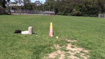 A plastic bottle rocket launched into the sky in a science experiment that wowed a science teacher's class in Gosford, Australia.<br /><br />To make the rocket, science teacher Jacob Strickling poured liquid nitrogen into the half-filled bottle of Diet Coke, and when turned upside down forced the Diet Coke out of the nozzle of the rocket.<br /><br />This footage was taken on May 22.