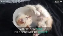 Un adorable chaton ne se rend pas compte de son cône