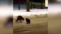 La extraña pelea de un zorro y un gato... ¡por un chorizo!