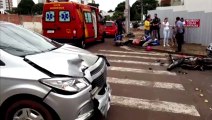 Motociclista sofre fratura na perna após bater contra Corolla, no Bairro Pacaembu