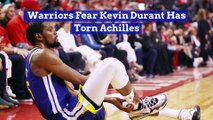 Warriors Fear Kevin Durant Has Torn Achilles Durant's return from a right <br />calf injury was short-lived. The Warriors star suffered a right Achilles injury during the second quarter of NBA Finals Game 5. Durant scored 11 points before exiting the game with the injury. The Warriors fear that an MRI on Tuesday <br />will confirm a torn right Achilles tendon, <br />according to ESPN. An emotional Bob Myers, Golden State's <br />president of basketball operations, <br />spoke to the media after Game 5. Bob Myers, via statement Durant was seen leaving the arena <br />on crutches during the third quarter. He posted his support for his teammates <br />on social media following the game. Kevin Durant, via Instagram The Warriors defeated the Raptors 106-105 to <br />force a Game 6 in Oakland on Thursday night.